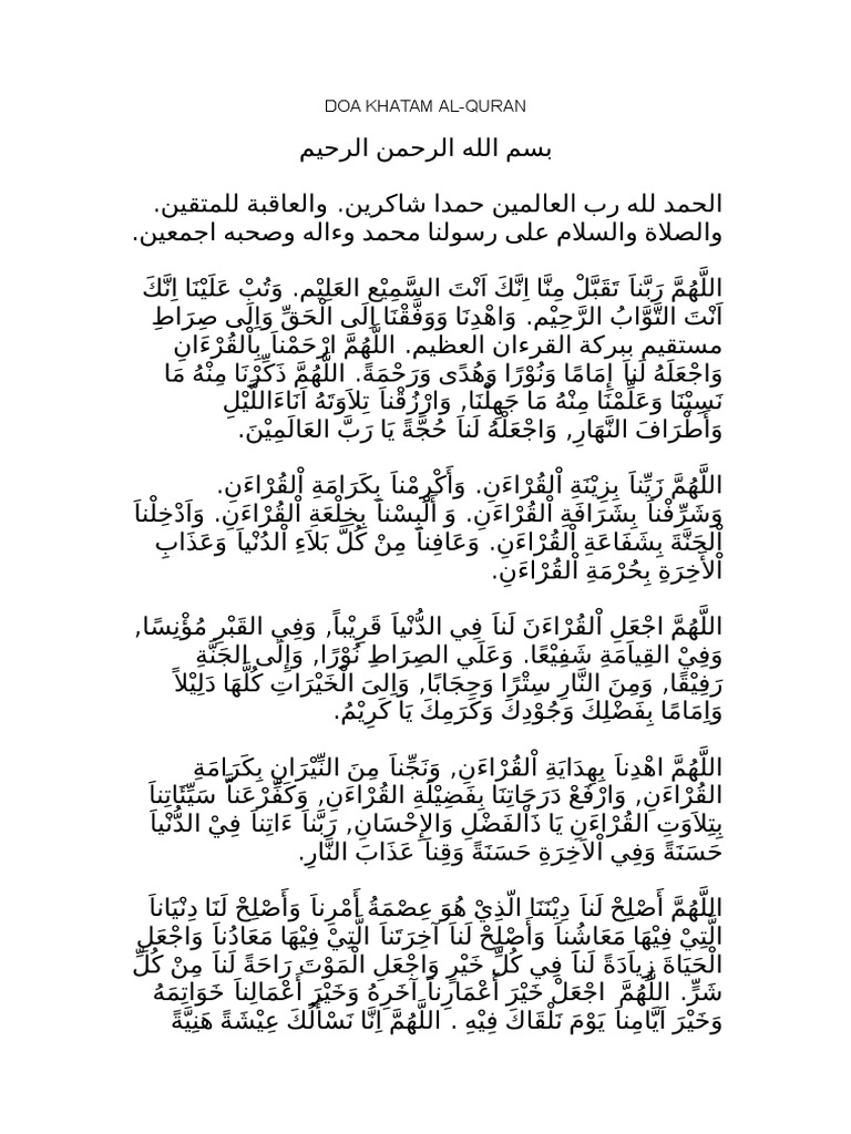 بِسْمِ اللهِ الرَّحْمنِ الرَّحِيْمِ، اَلْحَمْدُ لِلّٰهِ رَبِّ الْعَالَمِيْنَ حَمْدَ الشَّاكِرِيْنَ، حَمْدَ النَّاعِمِيْنَ حَمْدًا . Berikut bacaan doa khatam quran. Waj'alhu lii imaama wa nuran wa hudan wa rohman. Waj'alhu lii imaama wa nuran wa hudan wa rohman. Waj'alhu lii imaman wa nuran wa hudan wa rohman. Apakah parents punya rencana menamatkan quran? Allaahumma dzakkirnii minhu maa nasiitu wa ' . Werbefrei streamen oder als cd und mp3 kaufen bei amazon.de. Allahumma dzakkirni minhu maa nasiitu wa 'allimnii minhu maa . Wajalhu li imaman wa nuran wa hudan wa rohmah. Allahumma dzakkirni minhu ma nasitu wa 'allimni .